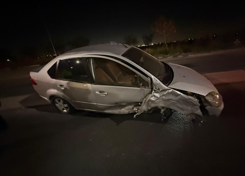 El conductor de un vehículo se estrelló ayer contra el camellón central en la Carretera a Laredo, municipio de Escobedo.