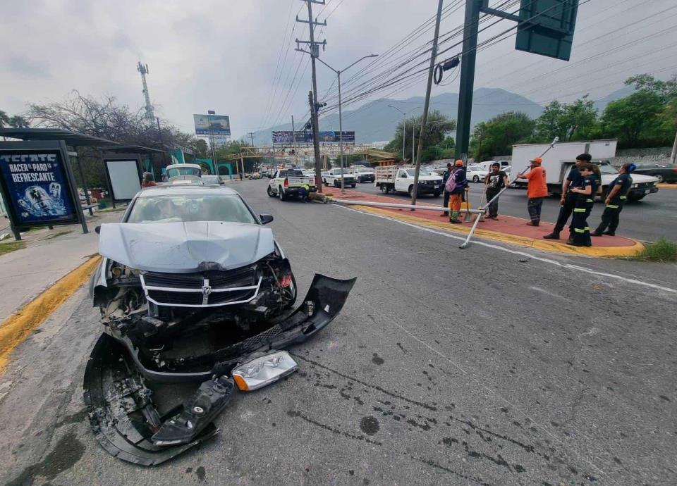 La conductora de un vehículo resultó lesionada, luego de estrellarse contra una luminaria ayer en la Avenida Eugenio Garza Sada, a la altura del Parque Canoas.