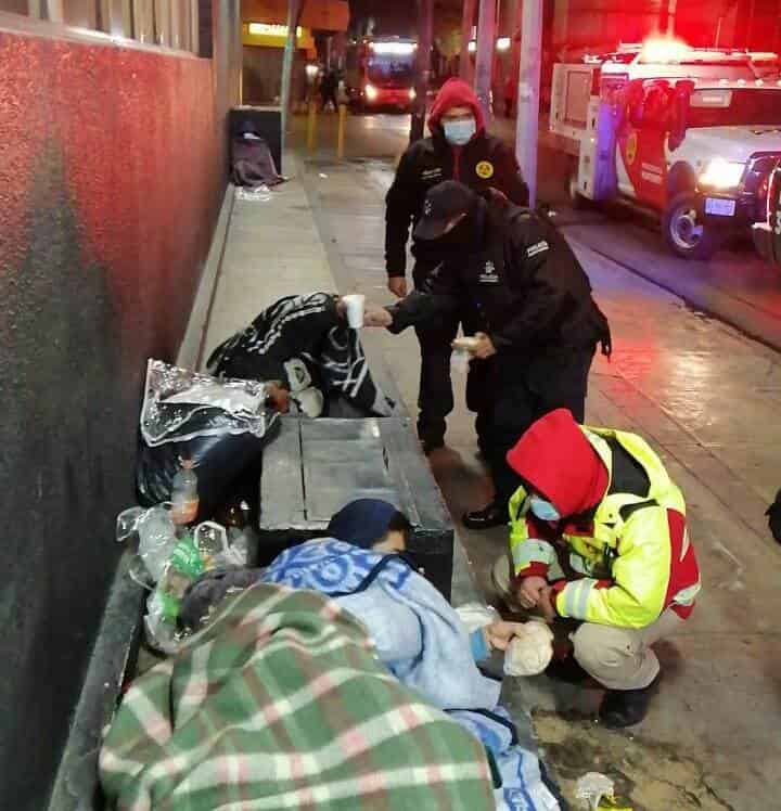 Los cuerpos de auxilio municipales proporcionaron bebidas calientes y cobertores a personas que viven en situación de calle.