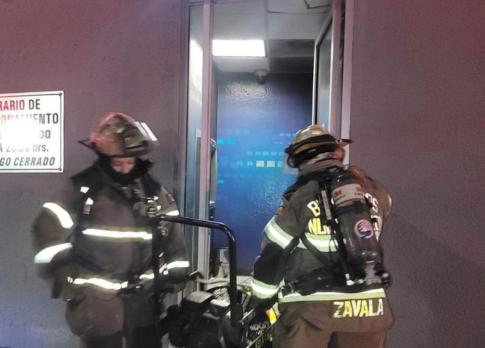 Al llegar al lugar, los bomberos mencionaron que dentro del cajero estaba consumiendo un bote de basura.