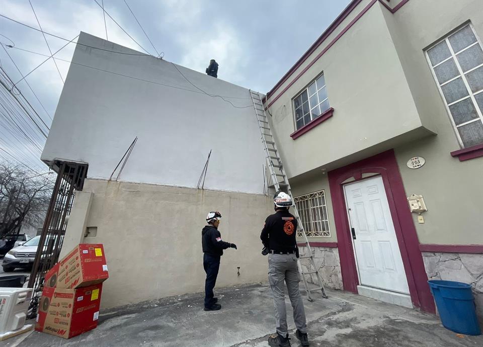 Fueron los elementos de Protección Civil Nuevo León, quienes atendieron el reporte de una persona lesionada por corriente eléctrica la cual se encuentra en la parte alta del domicilio.
