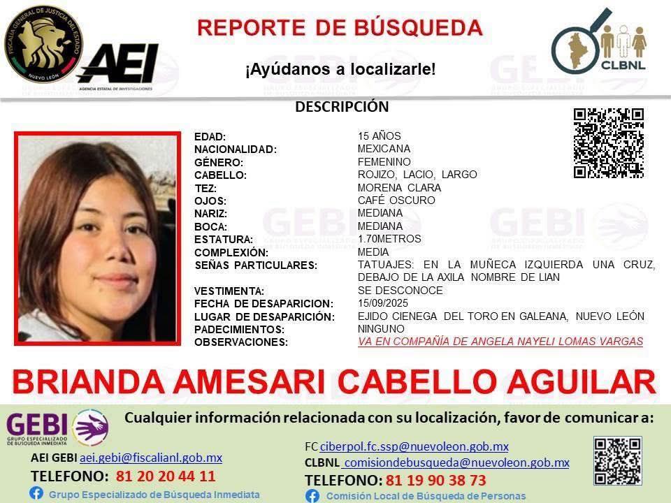 Mientras que su acompañante fue identificada como Brianda Amesari Cabello Aguilar, de 15 años, con domicilio en la misma comunidad.