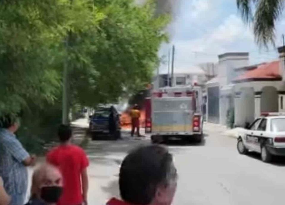 Cuando atendían el incendio del vehículo, personal de bomberos de Allende Nuevo León, se quedaron sin agua.