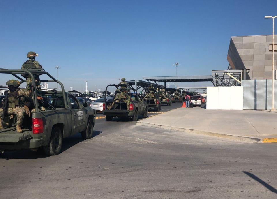 Elementos del Ejército Mexicano llegaron esta mañana al Aeropuerto Internacional de Monterrey para colaborar ante la ola de violencia en Nuevo León.