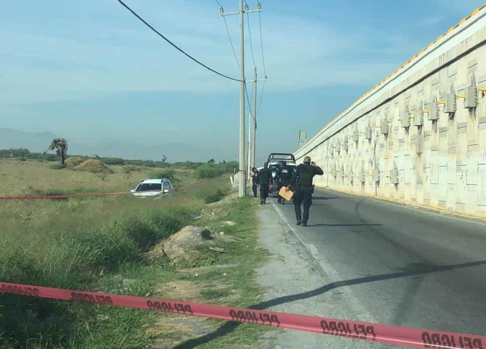 La camioneta blanca quedó a unos metros de la carpeta asfáltica y estaba con las puertas abiertas, y en el interior del lado del copiloto el cuerpo del desconocido que traía camiseta negra y short azul.