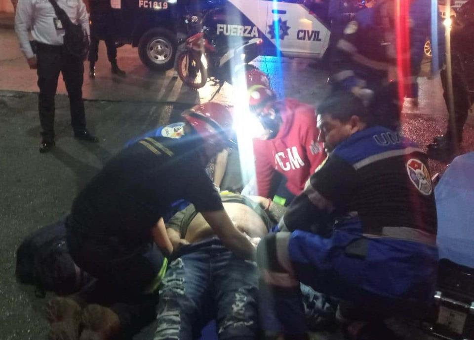 El conductor de la motocicleta se identificó ante las autoridades como Sergio Oswaldo Domínguez Espinoza, auxiliado por paramédicos de UMT.
