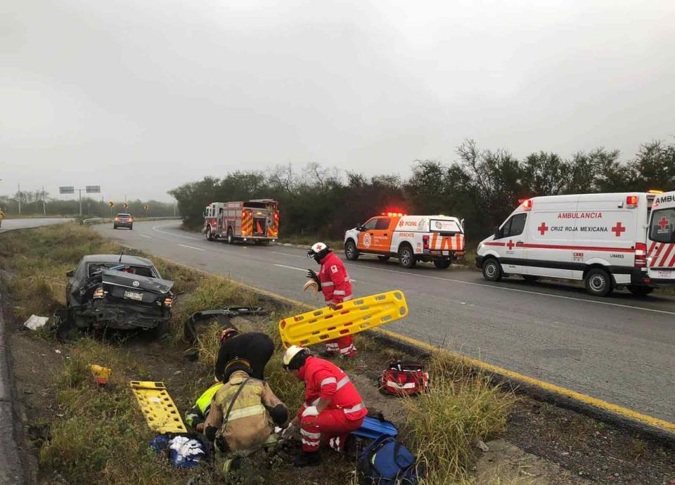 El doble accidente fue reportado la mañana del lunes sobre la Carretera Nacional en el kilómetro 175, entre Montemorelos y Hualahuises.