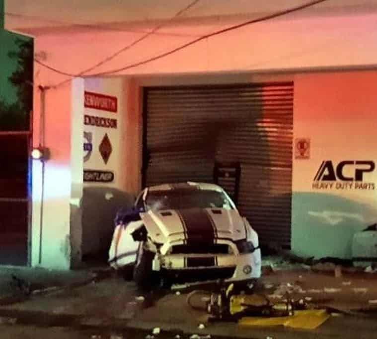 Según los primeros informes, el carro derrapó sobre el asfalto resbaloso y brincó a la zona de la Ecovía, donde destrozó unos protectores que delimitan el carril exclusivo. Al continuar su camino, el automóvil deportivo se estrelló contra una luminaria y llegó hasta un negocio de refacciones automotrices, donde se estrelló en la fachada.