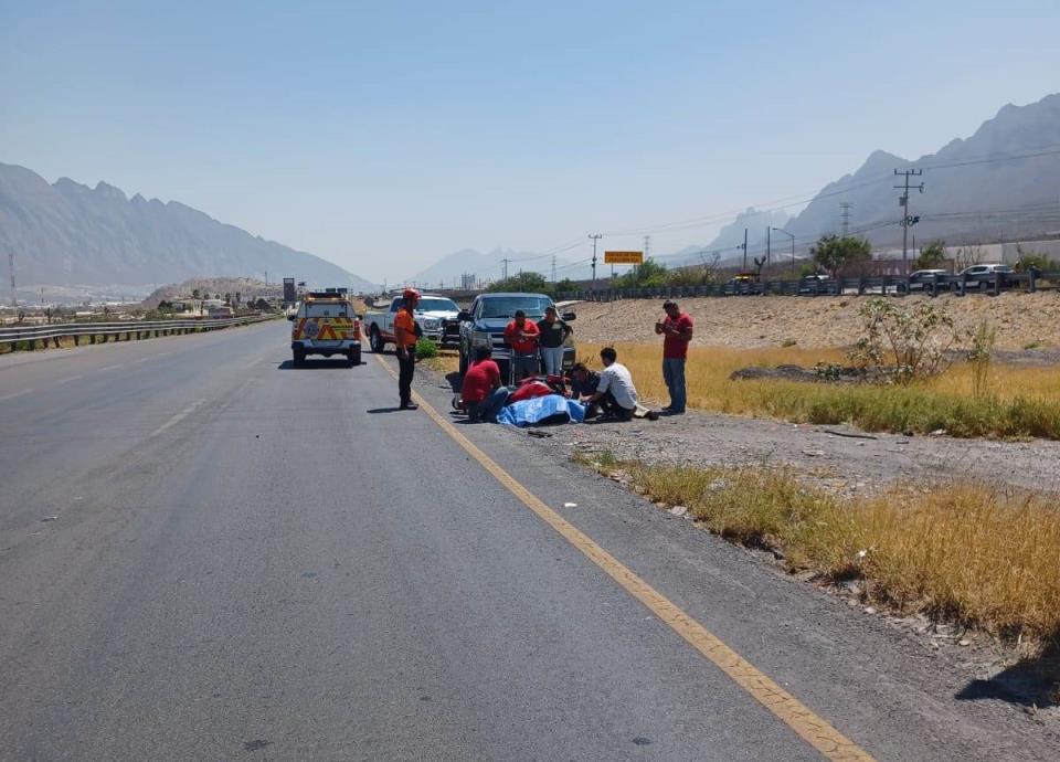 Luego de impactarse contra una camioneta, un motociclista falleció en la Carretera a Saltillo, a unos metros del Campo Policial de Fuerza Civil, esta mañana en el municipio de Santa Catarina.