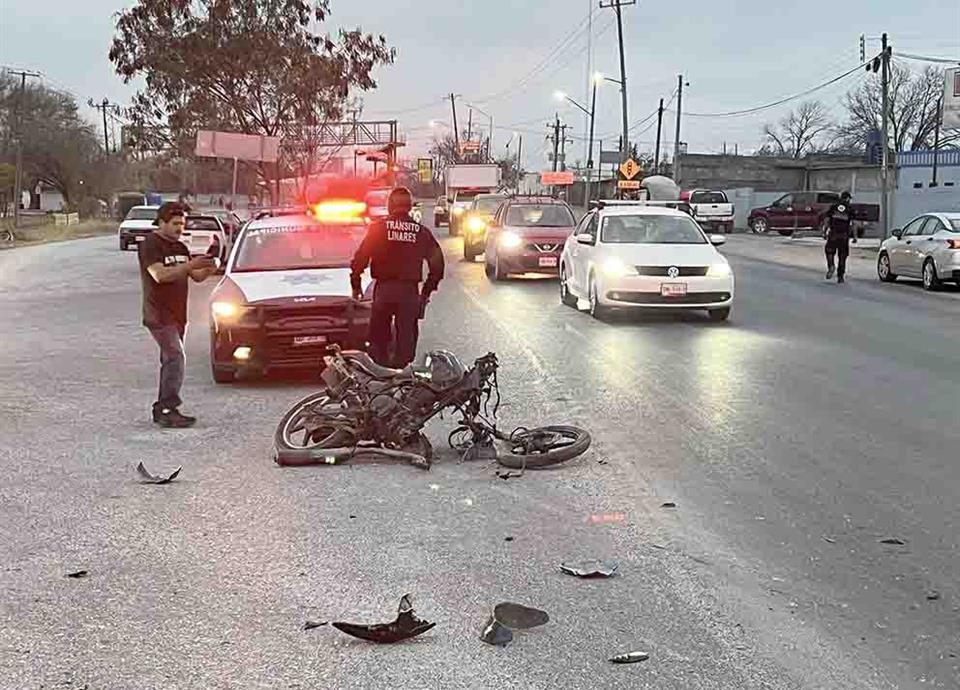 Trágica muerte fue la que tuvo un motociclista, quien fue impactado por un automóvil sedán que lo proyecto contra una camioneta, en el municipio de Linares.