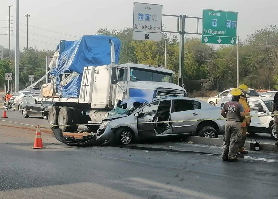 Fue en esos momentos en que venía por la misma avenida pero en dirección al oriente el tracto-camión, que se llevó de encuentro al auto del lado del copiloto.