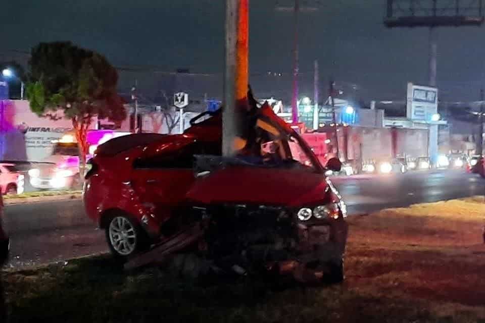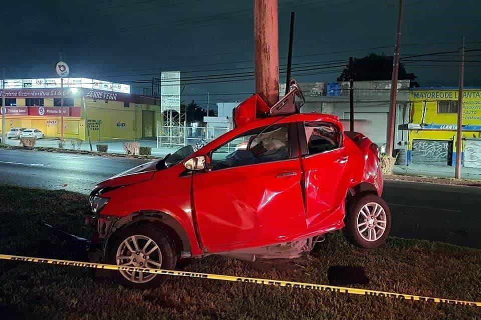 Monterrey N.L.- Una mujer perdió la vida al destrozar su vehículo, luego de impactarse a una velocidad excesiva en un poste de un anuncio tipo bandera, en el municipio de Apodaca.