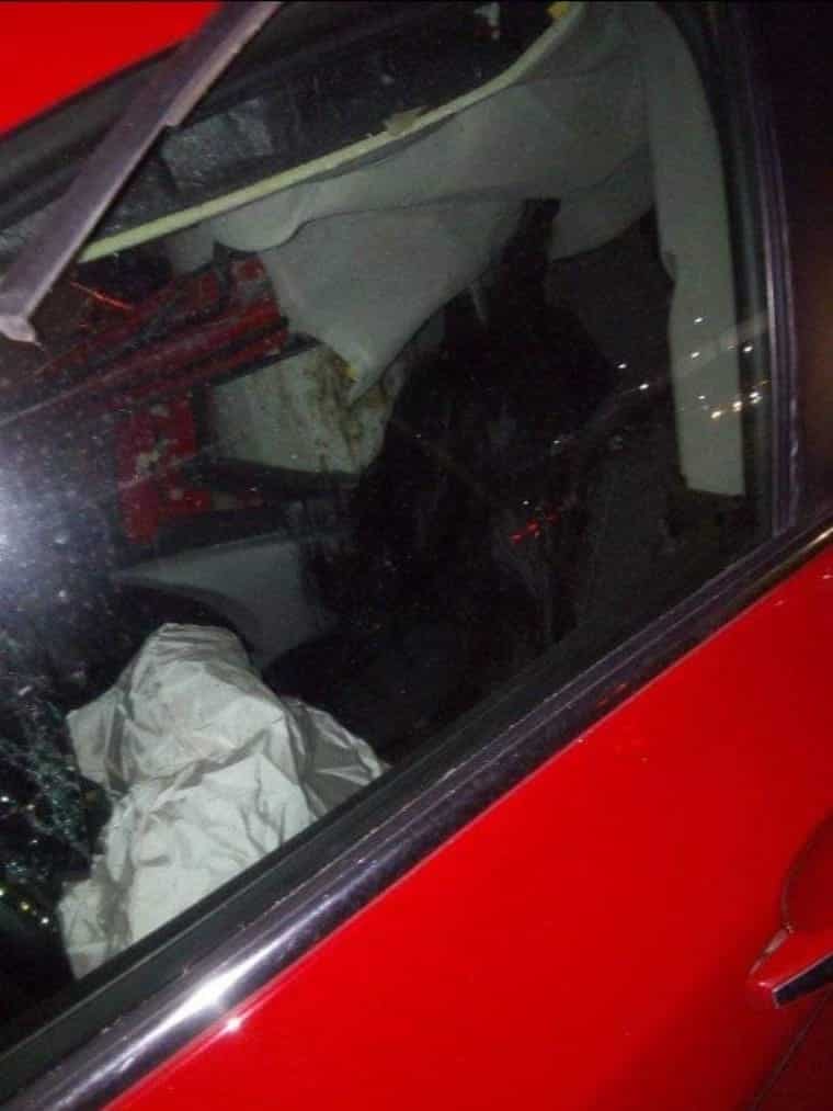 Debido al impacto, el motor de su vehículo sedan, salió proyectado unos diez metros sobre la carpeta asfáltica.