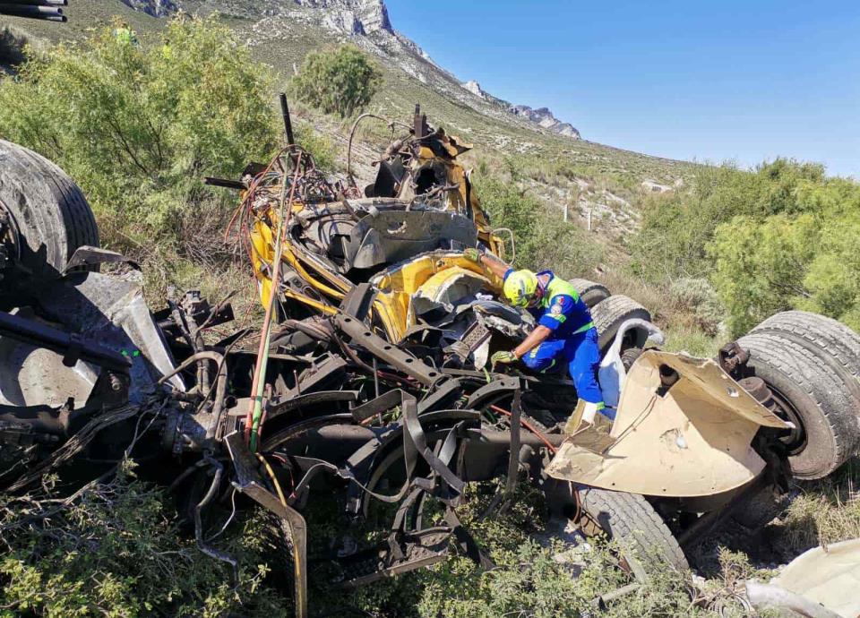 El conductor de un tráiler falleció esta mañana luego de chocar por alcance contra otra unidad de carga y caer a un barranco, en la Carretera a Saltillo, municipio de Santa Catarina.