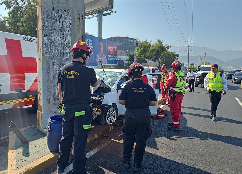 Elementos de Movilidad Monterrey permanecieron en el sitio abanderando la zona, mientras se llevan a cabo las maniobras de retiro del vehículo y de la persona fallecida.