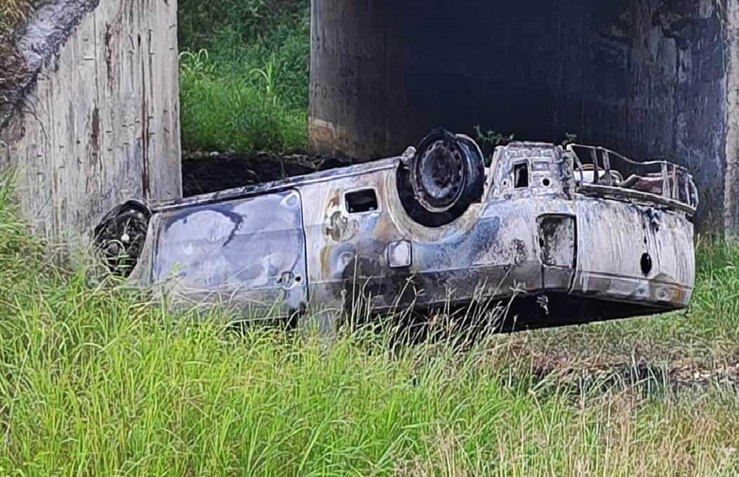 Una vez que llegaron las autoridades tras el reporte del accidente, y al sofocarse las llamas, encontraron al conductor en el interior, calcinado.