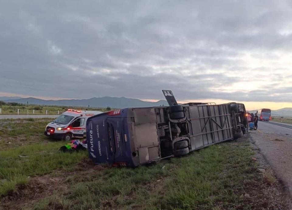 La unidad volcada es un autobús de la línea “Futura”, salió de Morelia, Michoacán y tenía como destino Monterrey.