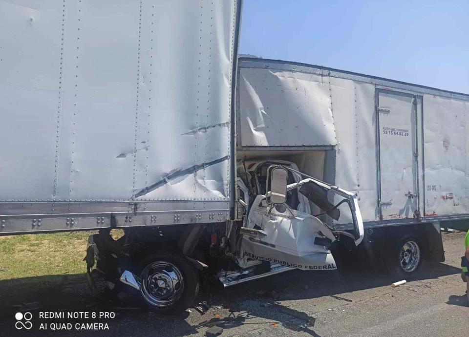 El camión se estrelló en la parte posterior de la caja de un tráiler con placas 55 AL 7T, con razón social transporte Huitz, del cual no se encontraron a las personas que viajaban en el mismo.