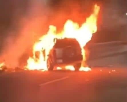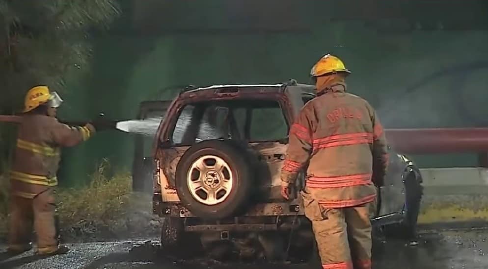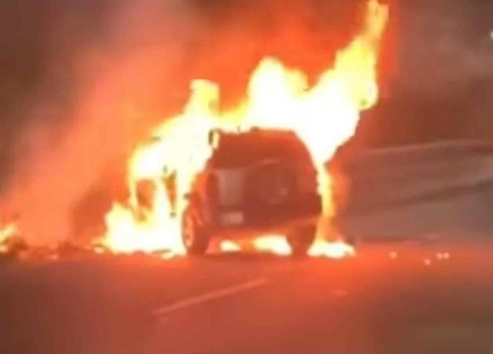 Debido al fuerte impacto, el Jeep comenzó a incendiarse.
