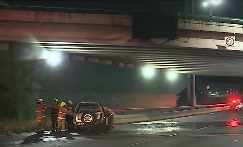 Monterrey N.L.- Varios automovilistas salvaron la vida de una mujer, que estrelló su camioneta que se incendió en los carriles exprés de la Avenida Morones Prieto, en el municipio de Guadalupe.