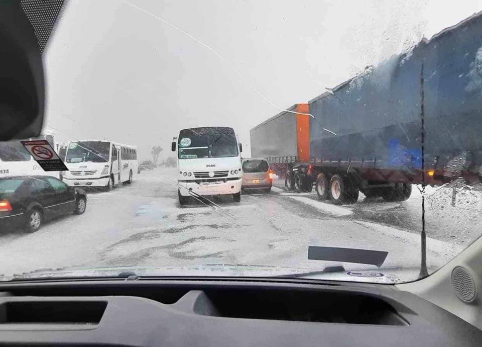 Al verse sorprendidos, algunos conductores perdieron la visibilidad de sus parabrisas, por la gran cantidad de granizo que estaba cayendo.