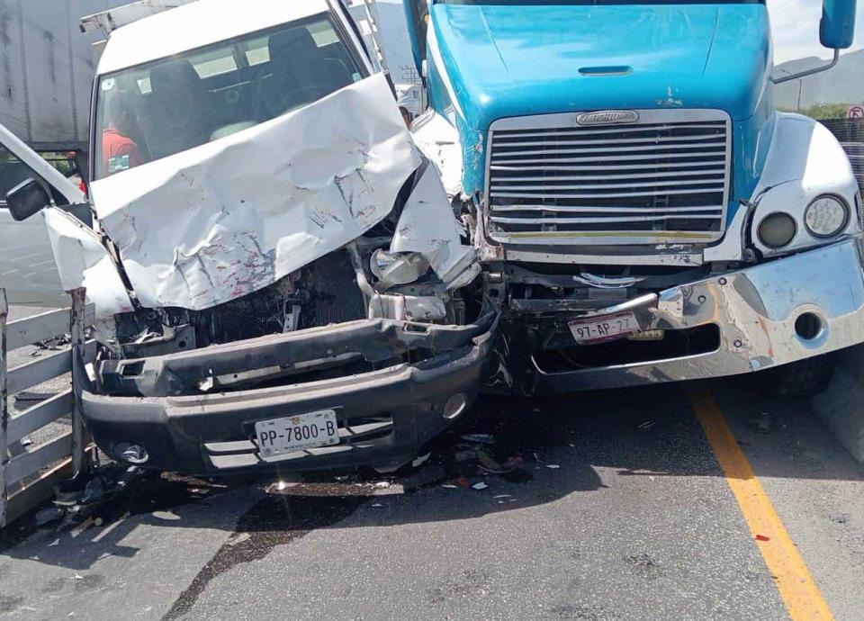 El tráiler se estrelló contra un auto Fusion que terminó bajó una camioneta estaquita Nissan, en dirección de Santa Catarina al municipio de Apodaca.