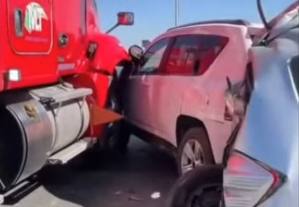 Se dijo que el tráiler impactó cuatro automóviles compactos, entre ellos un Versa, un Chevrolet tipo Spark, un automóvil Honda, entre otros.
