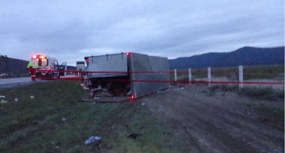 Explicaron que más delante de donde quedo el tráiler volcado, quedó el segundo vehículo de carga.