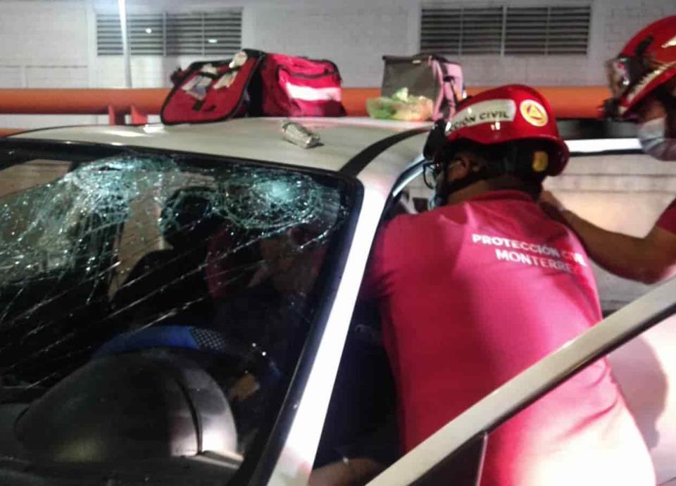 El personal de Protección Civil de Monterrey acudió al sitio de los hechos para atender a la persona, que se encontraba atrapado en su mismo vehículo.