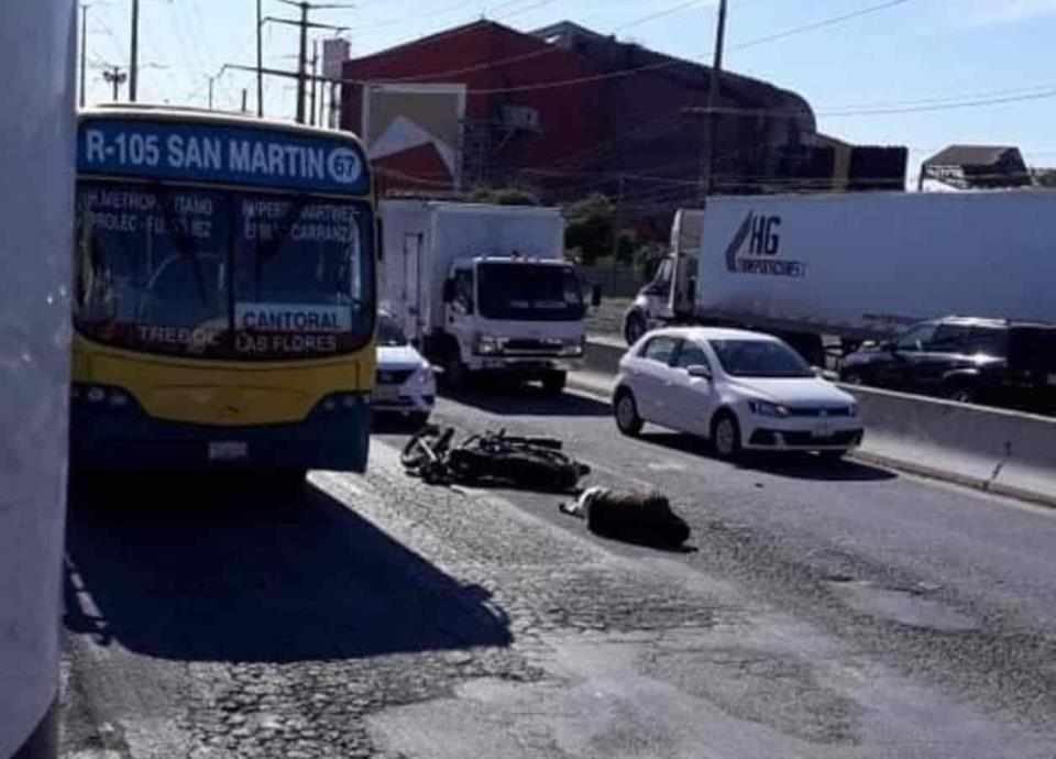 Un motociclista terminó con lesiones graves, después de chocar por alcance contra, una unidad del transporte colectivo en el municipio de Apodaca.