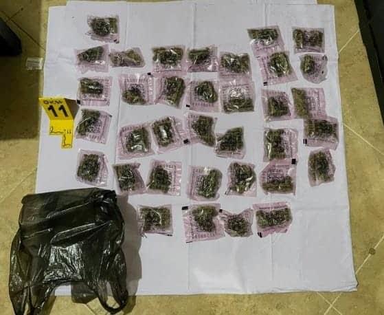 También se aseguraron bolsas con droga, aparentemente mariguana, y otras más con metanfetaminas.