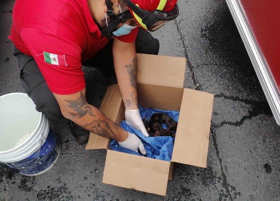 Los rescatistas se percataron de que únicamente se incendiaba basura en el patio de la vivienda, y al revisar se percataron de seis cachorros.