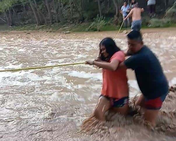 Sin pensarlo, los guardianes del orden comenzaron a lanzar cuerdas para atarlas a un árbol y así poder meterse al agua para sacar a las personas.