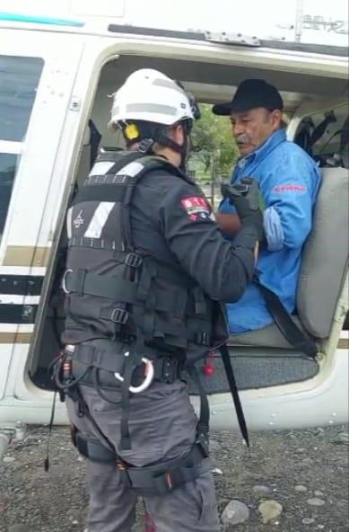 El helicóptero pudo bajar en un área del rancho, para luego poder llegar a la persona y realizar su trasladado a un área segura.