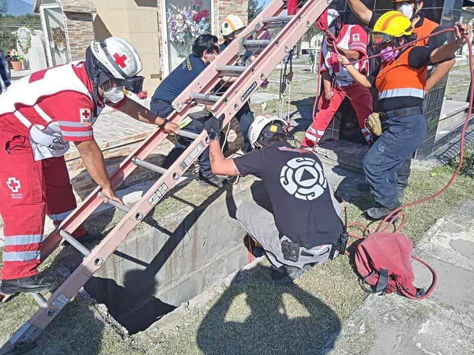 Una mujer terminó con diversas lesiones, al caer accidentalmente a una tumba que se encontraba en malas condiciones, en un panteón del municipio de Escobedo.