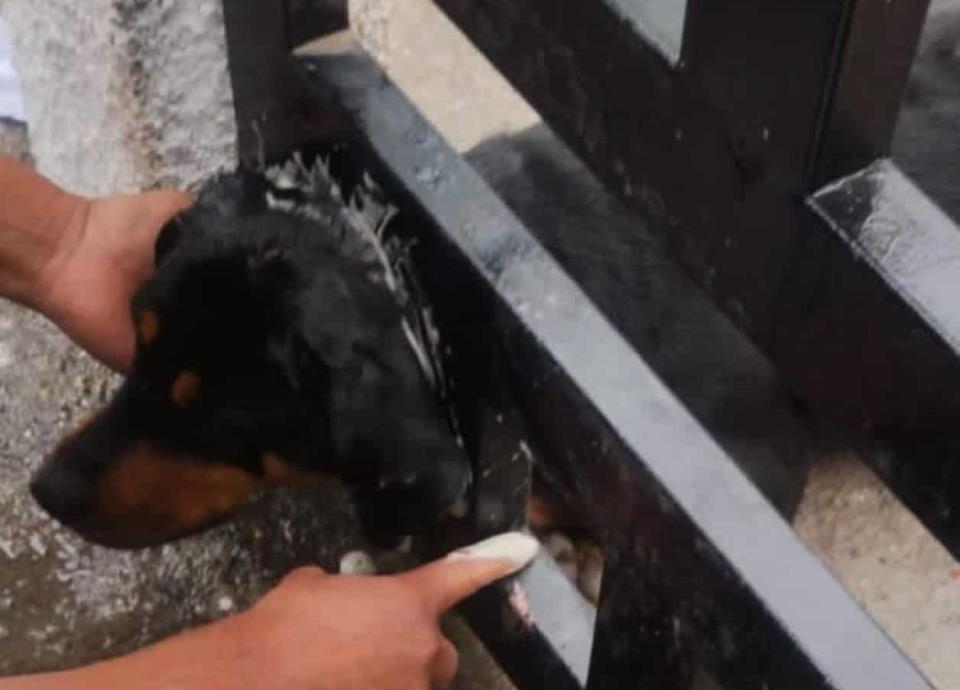 Una vez en la vivienda señalada, los rescatistas acudieron se entrevistaron con una mujer llamada Rosy, una vecina del lugar quien relató a los elementos que “La Negrita” estaba sola en el patio de la casa cuando quedó atorada en el barandal.