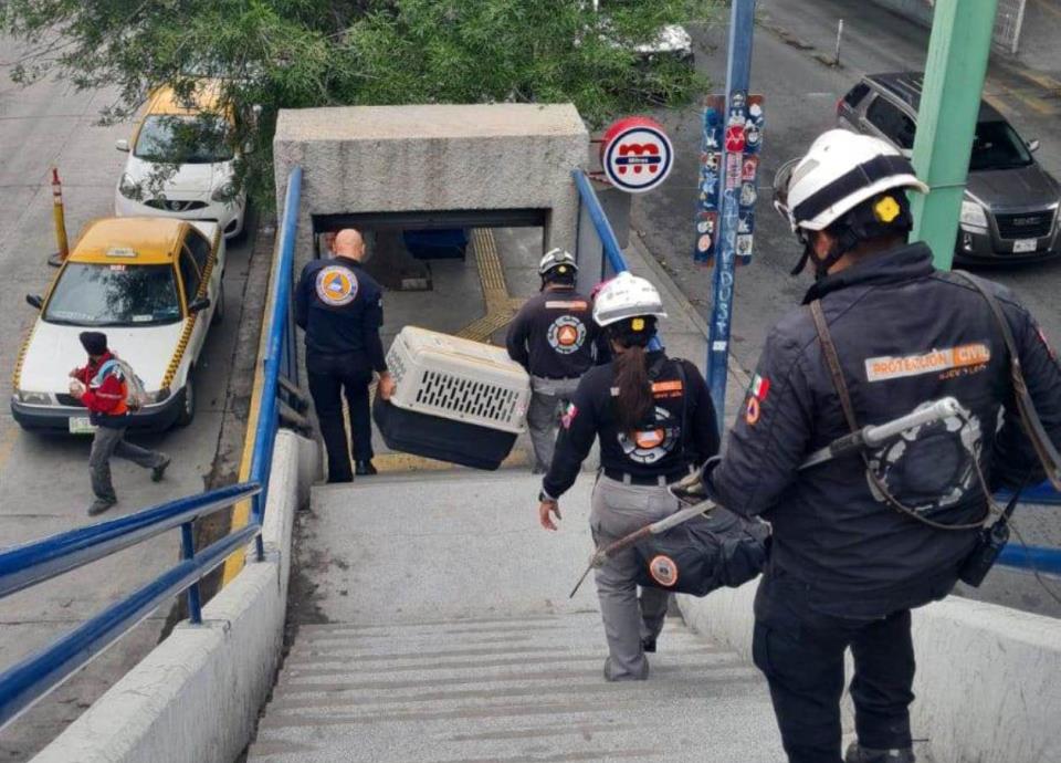 Los elementos de PC acudieron al lugar para rescatar al can, en la estación antes mencionada ubicada en Avenida Rodrigo Gómez, a una cuadra de Ruiz Cortines, Monterrey.