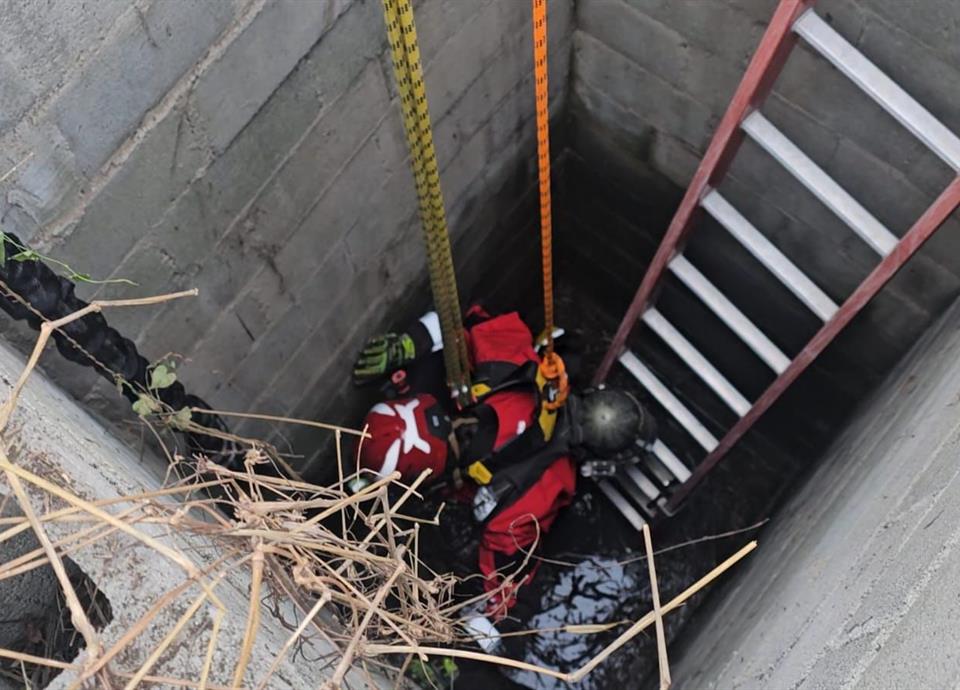 Protección Civil Monterrey recibió reporte sobre un can atrapado al interior de una noria.