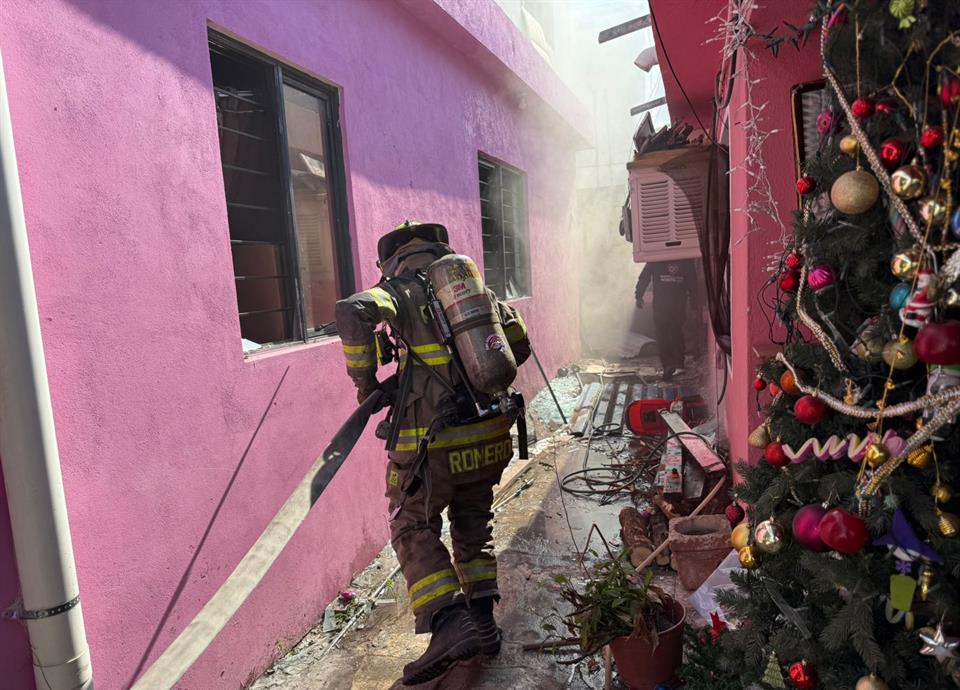 En el lugar se estableció que se registró un flamazo tras una fuga de gas en un tanque de 10 kilos, el cual estaba en la parte trasera del domicilio, en el área de lavado.