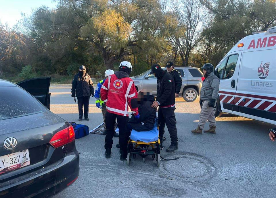 Mientras que paramédicos de una ambulancia de Protección Civil Linares, le proporcionaron atención pre hospitalaria al lesionado, quien fue trasladado a un centro médico para su valoración.