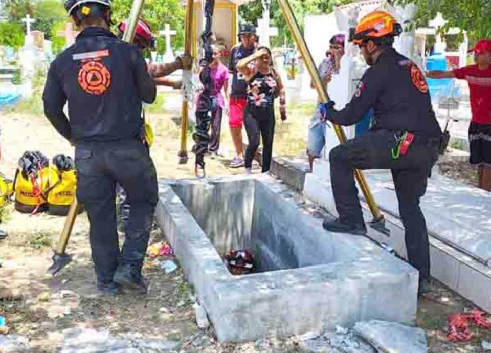 Al caminar por entre las tumbas, la persona perdió pisada y cayó a una fosa, siendo auxiliada por sus acompañantes, quienes además pidieron la ayuda de las autoridades.
