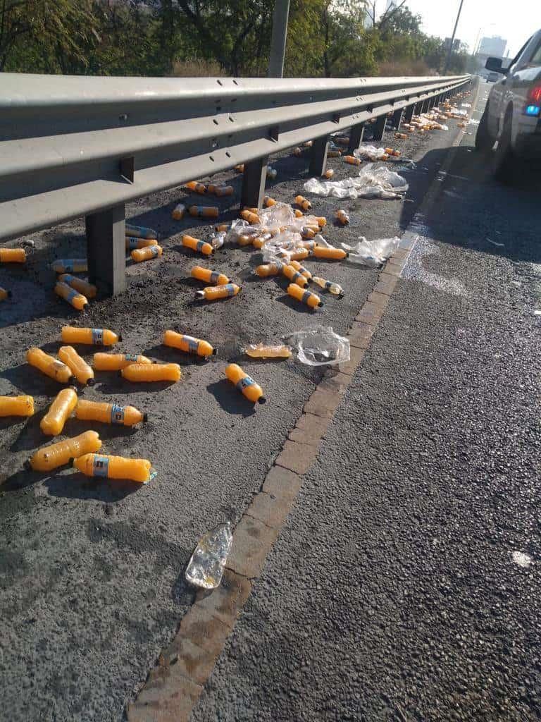 La caída de botellas con jugo en la carpeta asfáltica de los carriles exprés de Morones Prieto, llevó a que por algunas horas el área fuera cerrada por las autoridades, ayer a la altura de la Colonia Loma Larga.