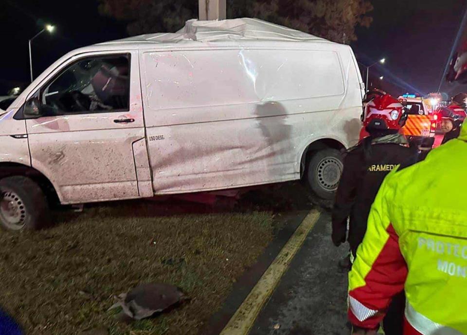 La unidad accidentada es un Volkswagen Transporter con placas de circulación PZ0714A, mismo que circulaba de sur a norte, cuando el conductor al parecer dormitó, se subió al camellón central y se estrelló contra un anuncio de bandera.