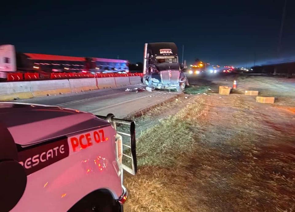 Aunque se había reportado una volcadura, los rescatistas lo descartaron, se trató de un tráiler de quinta rueda el cual se estrelló contra muro de contención.
