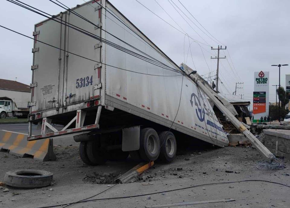 El tráiler se estrelló contra varios postes y muros de contención, y en el sitio personal de CFE hizo el corte de corriente en los cables derribados.