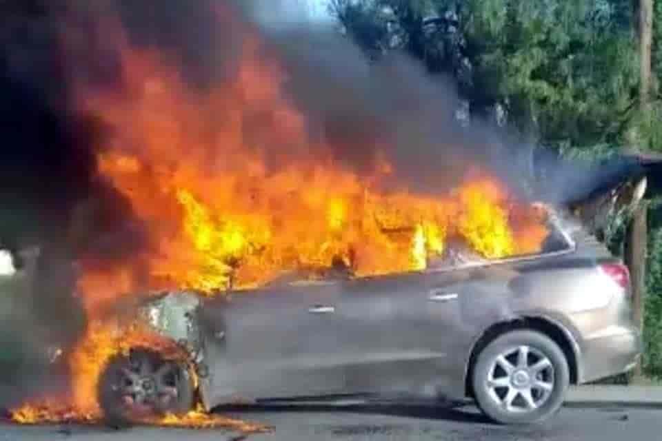 El conductor de un vehículo compacto alcanzó a orillarse y salir del auto antes de que éste fuera consumido por las llamas.
