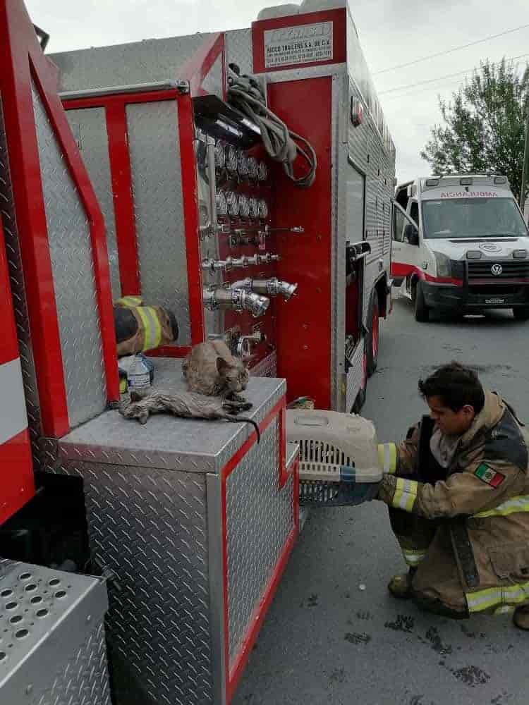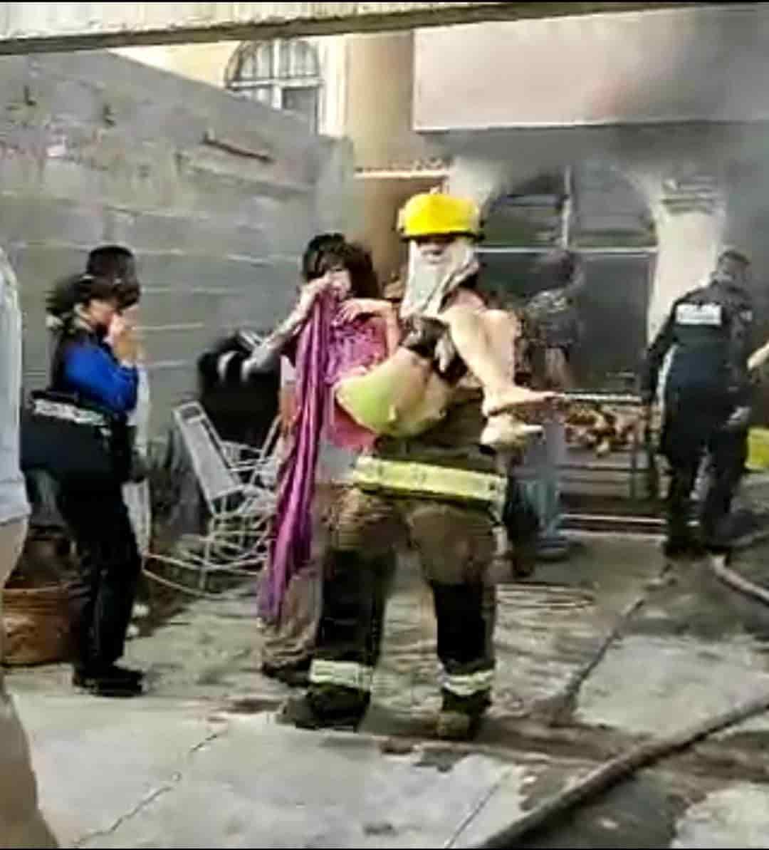 Monterrey N.L.- Cuatro integrantes de una familia del municipio de Apodaca, fueron rescatados por personal de Bomberos de Nuevo León, después de terminar atrapados en el segundo piso de su vivienda al reportarse un incendio en la segunda planta.