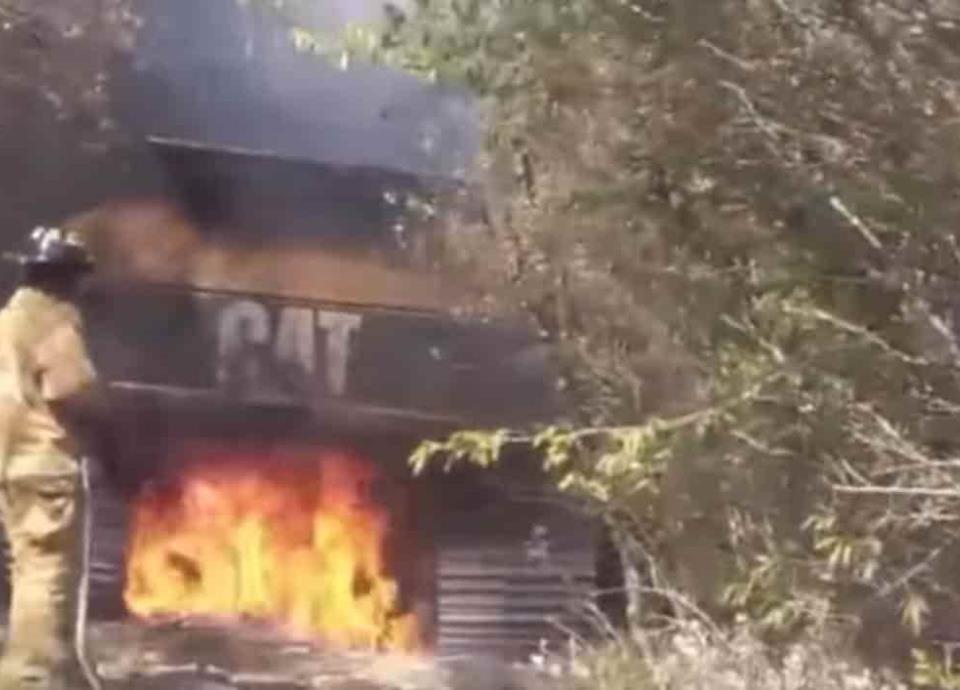 Mencionaron que al parecer fue una falla mecánica, lo que ocasionó el siniestro, que se extendió rápidamente, hacia la maquina pesada.