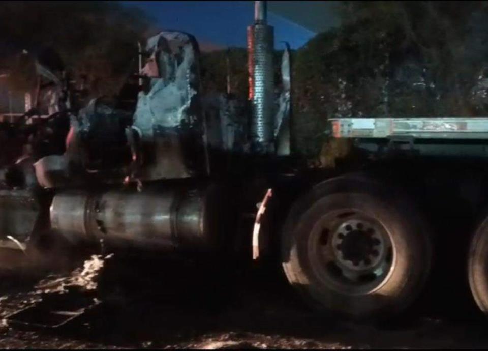 Las autoridades establecieron que el tracto camión se consumió en su totalidad en unos cuantos minutos.