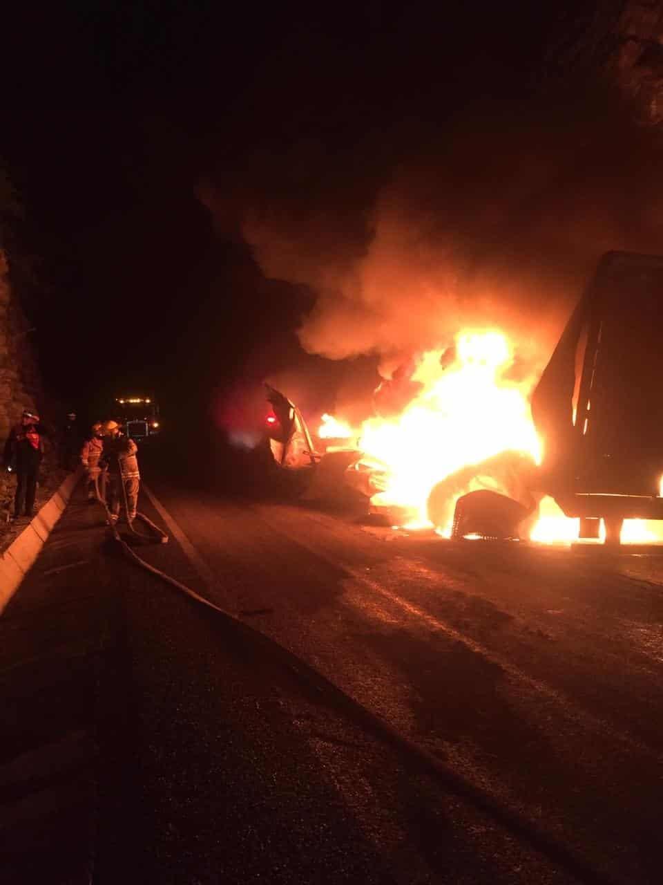 Indicaron que desafortunadamente, el fuego llego hasta la caja del pesado vehículo, ocasionando que se incrementara la intensidad del fuego.